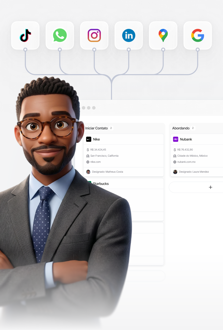 A IA encontra e contata leads por você. Transforma geração de leads em um processo contínuo e escalável, criando oportunidades automaticamente.