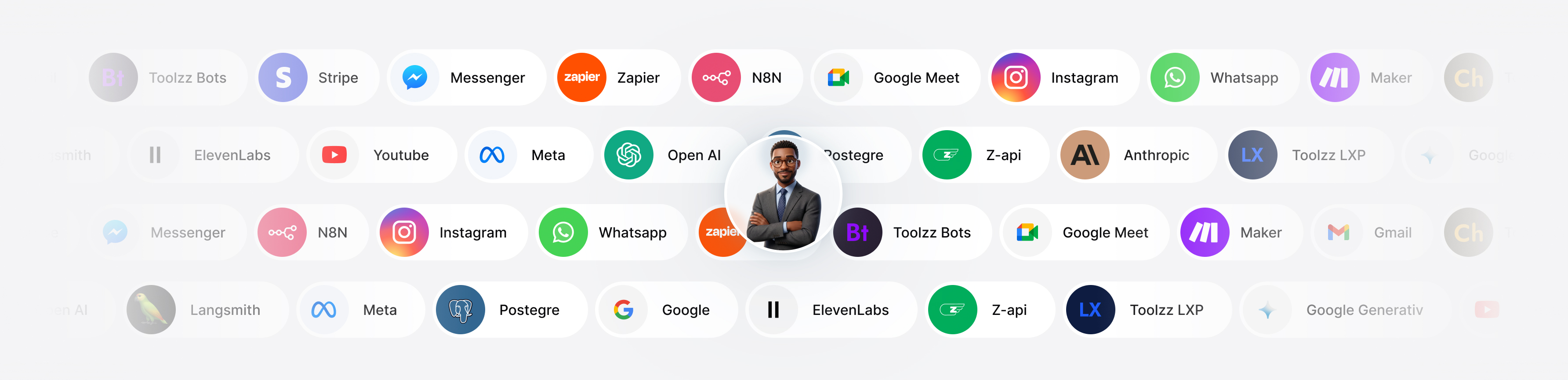 Crie agentes de IA para WhatsApp, Instagram, Messenger, Discord e Telegram. Automatize vendas e atendimento ao cliente 24/7 — com a mesma voz e o contexto do seu negócio.